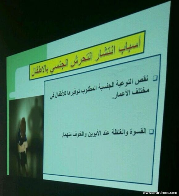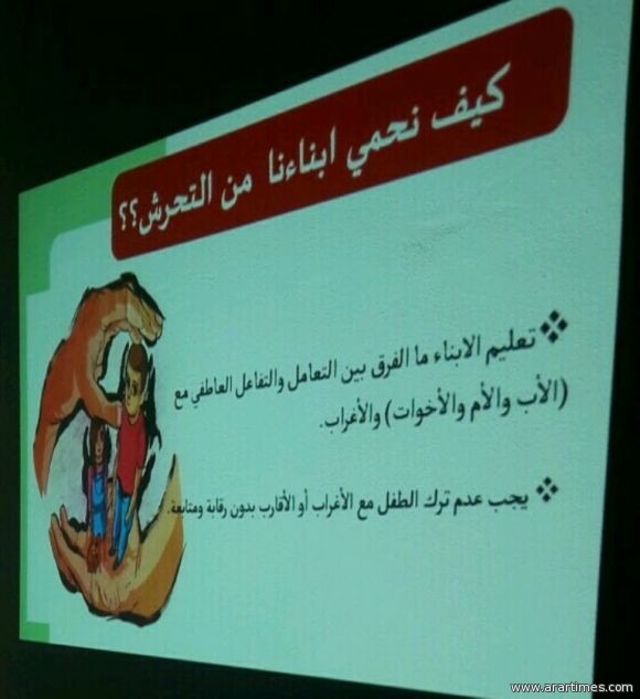 في يوم الخميس الموافق 21/ 4/1438هـ نظمت اللجنة الثقافية بمحافظة العويقيلة في النادي الأدبي الثقافي بالحدود الشمالية بقاعة الدورات والتدريبات بكلية العلوم والآداب بمحافظة العويقيلة، محاضرة بعنوان ( طفولتي أمانة ) ألقتها الدكتورة/ نوير سليمان البلوي، دكتوراه في الإرشاد النفسي والتربوي، وذلك ضمن برامج نشر الوعي المجتمعي عن التحرش الجنسي وإيذاء الطفل، وقد بدأت المحاضرة في تمام الساعة السادسة مساء، حيث قدمت الدكتورة البلوي مقدمة مبسطة عن التحرش الجنسي والإحصائيات التي أشارت إليها بعض الدراسات عن نسبة التحرش الجنسي في المملكة العربية السعودية، وقد أبانت أن النسبة ليست قليلة وصادمة مما يحتّم على الجميع وقفة جادة حيال هذه الجريمة وذلك بنشر الوعي عن الآثار المدمرة لها والتي تقتل براءة الطفولة، مبتدئين بالأسرة التي تعتبر نواة التربية وأساسها والتي إن صلحت صلح المجتمع بأكمله، ثم أرشدت الأمهات بأن يضعن نصب أعينهن جملة ( أنا أثق بجميع الناس ولكن لا أثق بالشيطان الذي بداخلهم)، ثم تطرقت الدكتورة لأهم أسباب التحرش الجنسي بالأطفال والأضرار الناجمة عنه وتوصية الأمهات ببعض النصائح التي يتبعنها لوقاية أطفالهن من التحرش الجنسي، وكيف يقمن بتوعية أطفالهن لحماية أنفسهم وذلك بإتباع رباعية الحماية المتمثلة بــ ( أعرف، أرفض، أهرب، أخبر).