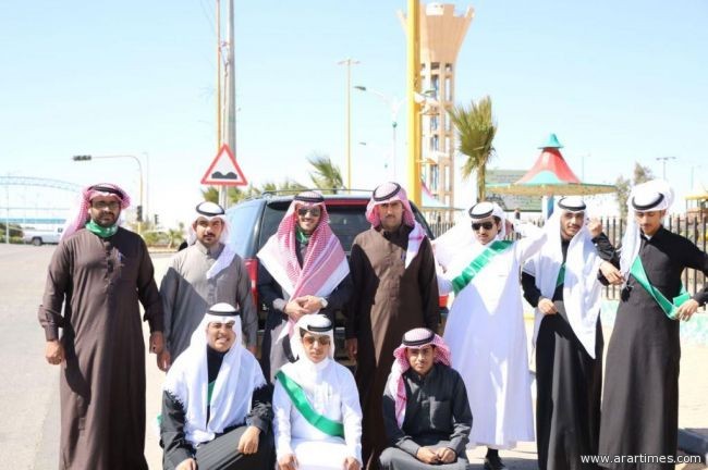 وفي المساء أقيمت في "مجمع عرعر مول" فعاليات ضمت مسابقة فنية للأطفال تلاها توزيع هدايا تحفيزية عليهم تحمل شعار الجامعة وأعلام الوطن الغالي، وكذلك مسابقة لفنانين تشكيليين لرسم لوحات فنية معبرة، ومعرض للخط العربي، بجانب معرض يبرز دور الجامعة في الحملة، كما شارك النادي الصحي بالجامعة بركن خاص به قدم فيه خدمة قياس الضغط والسكر للزائرين، كما ضم المعرض ركن لفريق الدراجات النارية بعرعر، وركن خاص بوضع البصمة على علم المملكة تعبيراً عن حب الوطن والانتماء له، وبعد ذلك قدم فريق من طلاب