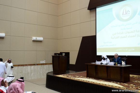 بدأ محاضرته بالحديث عن أهمية العنوان في النصوص الإبداعية , والتأكيد على أنَّ شعرية العنوان بدت موازية لشعرية النص عند بعض النقاد المعاصرين ؛ لقيام العنوان بدور فاعل في تجسيد شعرية النص وتكثيفها. وتتبع المحاضر تاريخ العنونة في الشعر العربي القديم , والمؤلفات في التراث البلاغي والنقدي وصولًا إلى استقراره كعلم مستقل ( علم العنونة ) في الدرس النقدي الحديث. ووقف عند أبرز المساهمين في صياغة العلم في النقد الحديث كجيرار جينيت , وليو هوك , وغولدمان , وغيرهم. وأكّد أن دراسة العتبات لجيرار جينيت أهم دراسة علمية ممنهجة في مقاربة العتبات بصفة عامة , والعنوان بصفة خاصة. ثمّ تحدث عن وظائف العنوان بين الدرسين : القديم والحديث. وقام بإجراء مقاربة بين الأسماء والعنونة ؛ ليؤكد أن الأسماء عنونة لمسمياتها , وحول هذه القضية أطنب في التطبيق حول أسماء القرآن الكريم , وأسماء سوره , مؤكدًا العلاقة الوطيدة بينهما منطلقًا من نصوص تراثية لابن القيم والجاحظ والبقاعي. وأفرد محورًا لزمنية العنونة , وأساليبها غير المباشرة في الشعر العربي القديم كالعنونة بالمطالع , وبحرف الروي مع إضافة النص لقائله , وغيرهما من الطرق التي هي أقرب للوصف العام. ووقف عند مراحل مبكرة للعنونة كديوان أبي العلاء المعري ( سقط الزند ) الذي رأه بعض الباحثين يمثل شيئًا من مفهوم العنونة المعاصرة. ثم تتبع العنونة في شعر الشعراء من الجاهلية إلى العصر الحديث ؛ ليؤكد أنَّ العنونة لم تظهر بشكل واضح في الشعر العربي إلا عند مطران والرومانسيين في العصر الحديث , وهذا الذي أعطى أسماء سور القرآن الكريم أصالة في التسمية وجمالية فنية وموضوعية , وظاهرة لافتة عند العرب الذين نزل القرآن عليهم. ثمّ تحدث عن العلاقة الوطيدة بين اسم السورة ومقصدها العام , وعلاقة اسم السورة بموضوعاتها المتنوعة. وأنَّ المعرفة الواعية لمدلول اسم السورة ومعانيها يؤدي إلى معرفة مقصود السورة مستدلًا بنصوص من الإمام البقاعي , ومجموعة من البلاغيين المعاصرين , وتمثل دراسة آل حم للدكتور محمد أبي موسى محطة رئيسة لتمثل هذا المفهوم في دراسته الواقعة في أربعة أجزاء. ثمّ وقف مع قضية مهمة وهي القول بأن تسمية السورة باسم لوروده في السورة ؛ ليؤكد أنَّ هذا سببًا واحدًا ضمن أسباب كثيرة وعميقة تحتاج مزيدًا من التدبر والتأمل وإدامة النظر. وختم محاضرته بتطبيق مطول على سورتي : الكهف والنور عبر الحقول الاشتقاقية والدلالية والوظيفية ؛ ليربط اسم السورتين بمقصدهما العام , وموضوعاتهما المتنوعة , وبعض خصائص الاسم البلاغية والموضوعية.