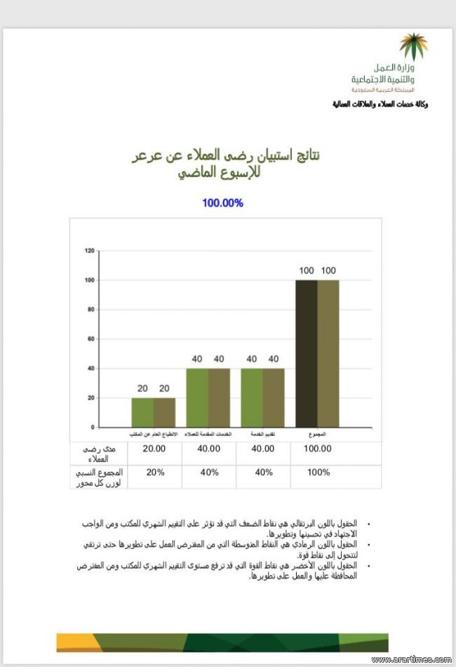 مكتب عمل عرعر يحقق المركز الاول على المناطق في رضا العملاء