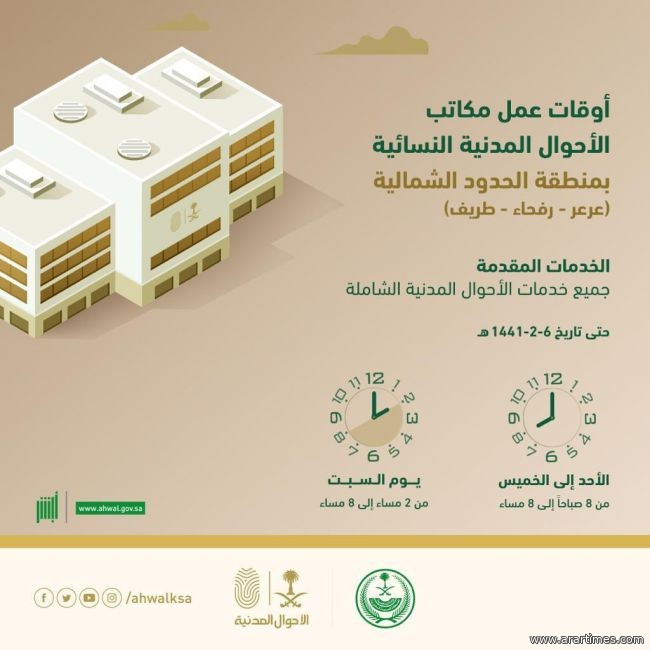 الأحوال المدنية النسائية بالحدود الشمالية تمدد فترة العمل