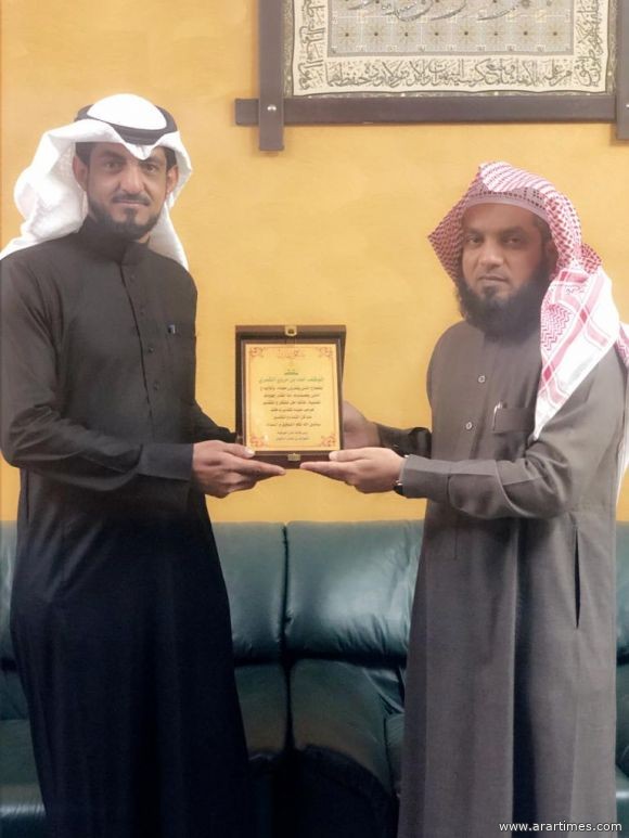 كرم رئيس كتابة العدل بمحافظة العويقيلة فضيلة الشيخ بدر بن عواض الرشيدي ، الموظفين المتميزين، على مستوى الإدارة .