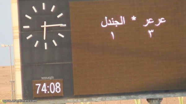 عرعر تايمز - موسى الصقرى :كسب فريق عرعر فريق الجندل من الجوف في مباراة ودية أقيمت عصر اليوم في المدينة الرياضية استعداداً لبطولة المنطقة حيث تفوق فريق عرعر بثلاثة أهداف مقابل هدف الجندل ولم تشهد المباراة حضور جماهيري