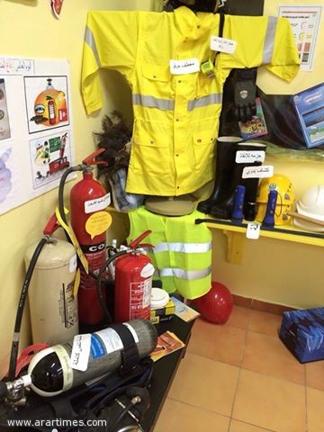 واشتمل البرنامج على معرض متكامل عرض فيه العديد من وسائل السلامة وانواع الطفايات وبعض الاعمال المقدمة من بعض الطالبات