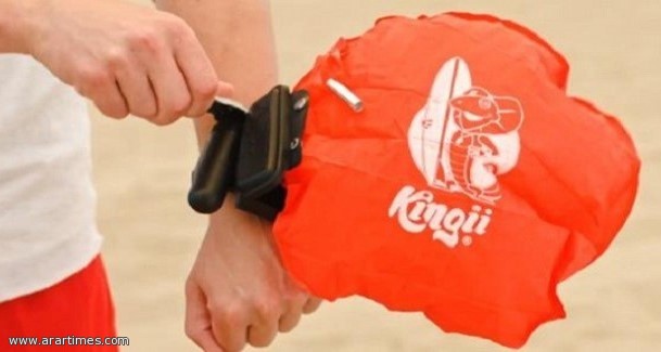 وأطلق المبتكر على جهازه الفريد اسم "كينجي"، ويصفه بالأكثر أماناً في العالم، إذ يتم ارتداؤه حول المعصم، وبكبسة واحدة يتمدد وينتفخ ليسمح لمرتديه بالطفو فوق الماء.